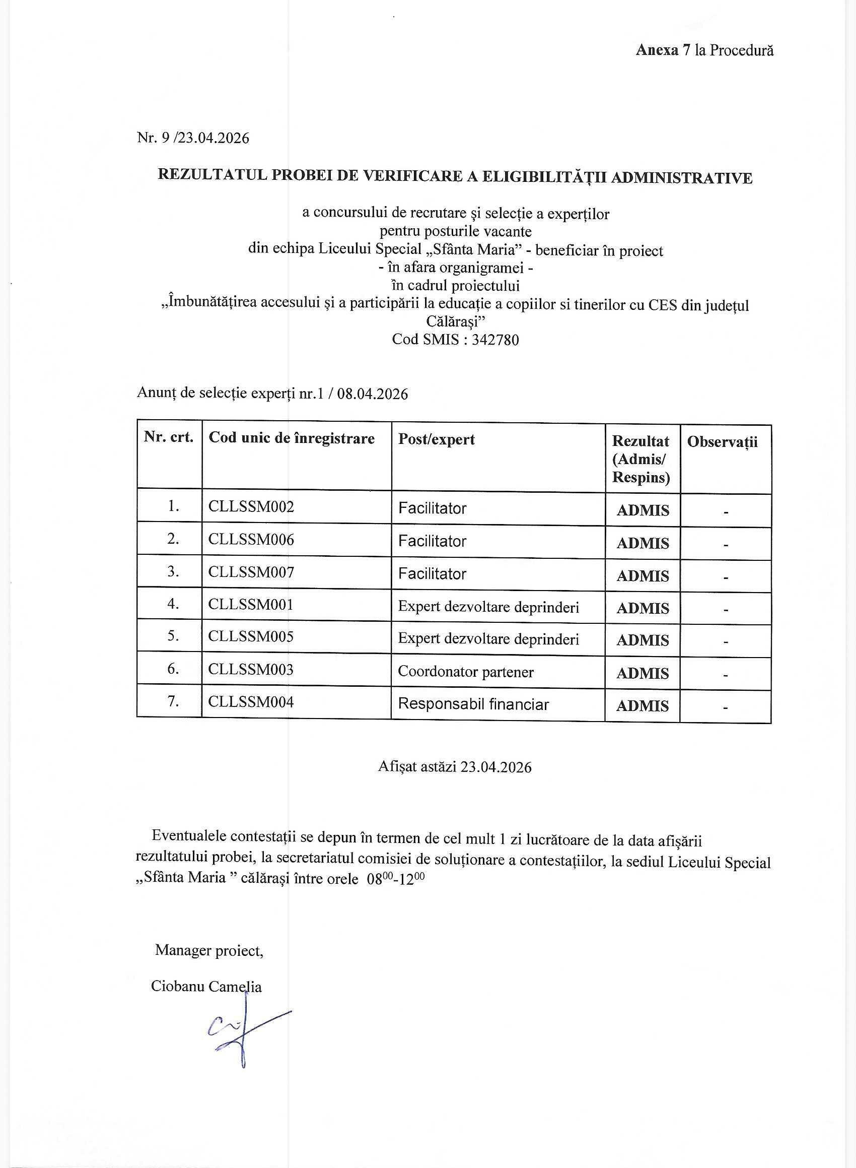 Concurs Rezulatul probei de verificare a eligibilitatii administrative – Proiect Byadmin 04/23/202604/23/2026Write a Comment on Rezulatul probei de verificare a eligibilitatii administrative – Proiect